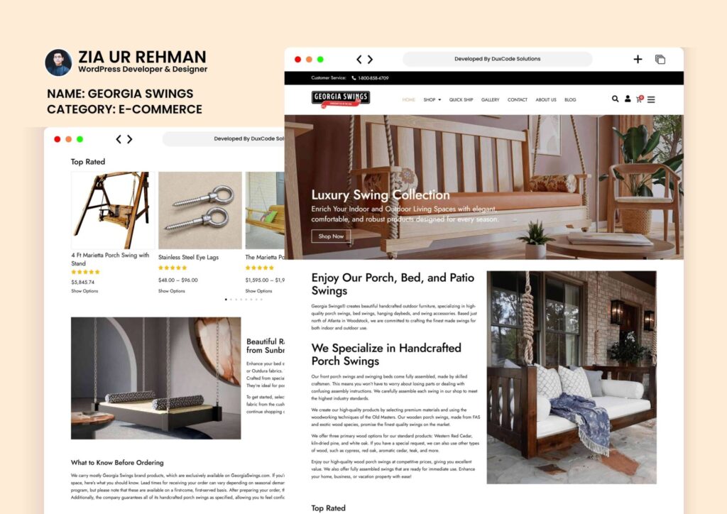 DuxCode Solutions developed this elegant and user-friendly e-commerce website for Georgia Swings, a handcrafted outdoor furniture business. Featuring a sleek interface, intuitive navigation, and a seamless shopping experience, the site showcases premium porch swings, bed swings, and patio swings. Key features include a product catalog, blog integration, shipping details, and a responsive design for an […]